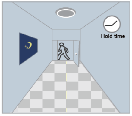 érzékelve, a lámpa kikapcsolt marad. lámpa bekapcsolva. szint a tartási idő lejárta után.