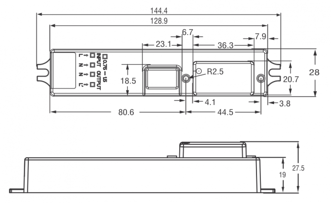 Interfészek | 4 pólusú dugaszolható szorítócsatlakozó (L,N,N,L') 0,75-1,5 mm2-es kábelhez |